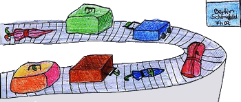 Comme on part toujours en période de vacances, on rencontre souvent à l'aéroport ou dans l'avion des profs ou d'autres gens qu'on connaît. Une fois, ma mère a rencontré un des profs de mon frère et elle a même parlé longtemps avec lui. Mon frère, lui, trouvait ça moins rigolo.