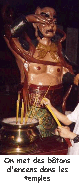 A Lantau, il y a le plus grand Bouddha assis du monde, tout en bronze. Il fait 34 m de hauteur et 26 m de large. Quand on rentre dans un temple bouddhiste, il y a partout des bâtons d'encens.