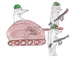 Les chars font bien sûr beaucoup de dégâts. Et c'est pour cela qu’après la Seconde Guerre mondiale, les gens ont pensé que la guerre était vraiment trop destructrice, que ce n'était plus un jeu, et qu'il valait mieux arrêter. Alors qu'est-ce qu'ils font maintenant ? Il faut quand même bien se défouler ! Alors maintenant, on joue au foot. Et c'est ce que j'aime dans le principe du jeu. Un coup, l'un gagne, l'autre coup, c'est l'autre qui gagne, et c'est bien mieux que de faire la guerre. On peut sûrement donner d'autres réponses, mais moi je vois les choses comme ça. C'est quand même intéressant qu'ici, en Europe, on ne veuille plus faire la guerre. On n'a plus envie. Et vous, vous trouvez ça comment ? C'est une bonne chose, non ?