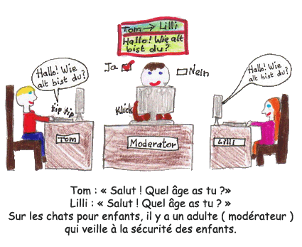 Si tu cherches un forum, demandes à tes parents s'ils peuvent t'aider. Ne visite que les "chats" modérés pour enfants et adolescents. C'est-à-dire que des adultes qui s'occupent du site, des modérateurs, lisent les messages et commentaires, et décident de les publier ou non, en fonction de leur sûreté. Pour "chatter" en sécurité, il y a par exemple le forum pour enfants Seitenstark.