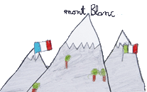 Le point culminant de la France est le mont Blanc (4807m), situé dans les Alpes, l'un des cinq massifs montagneux français. Les quatre autres sont les Pyrénées (frontière espagnole), le Massif central, les Vosges et le Jura (à l'Est).