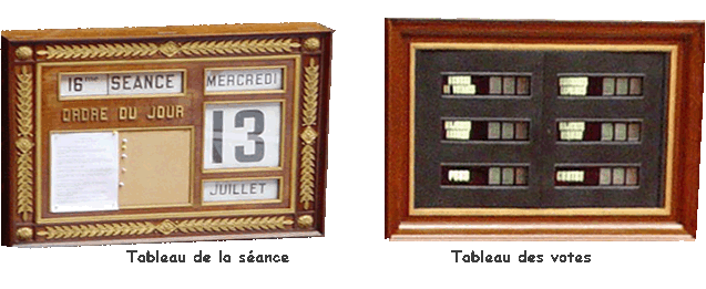 C’est le tableau des votes. Vous voyez sur les tables, il y a des boutons et quand on dit aux députés de voter, soit ils appuient sur un bouton POUR, soit sur un bouton CONTRE. Après, c’est tout de suite calculé et affiché. Sur le tableau.