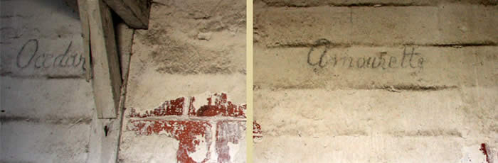 Ocedar, Amourette : anciens noms de chevaux marqués sur les murs au-dessus des abreuvoirs