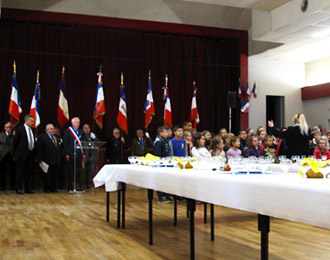 Greta : Le 11 Novembre est un jour férié en France. On n’en parle pas beaucoup à l’école mais les journaux nous tiennent au courant. Nous les enfants, on ne réalisait pas que c’était l’armistice. On savait seulement que c’était férié et donc qu’il n’y avait pas d’école. Quelques enfants allaient quand même chanter la Marseillaise devant le monument aux morts. Ce n’est qu’en CM2, quand nous avons travaillé sur la Première Guerre mondiale que nous avons compris ce que ça voulait dire vraiment. Des enfants chantant la Marseillaise lors d'une cérémonie
