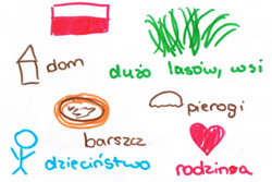 Julia: W Polsce żyje w sumie cała moja rodzina, tutaj żyją moi rodzice, mój brat i ja. W Polsce jest dużo wsi, wiele lasów i przyrody. W Polsce jest też pyszne jedzenie, np. pierogi i barszcz (zupa z buraków).