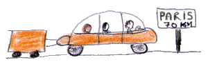 Manchmal werde ich im Auto krank. Dann höre ich Musik, und es geht mir besser. Die Rückfahrt mag ich eigentlich auch. Dann weiß ich, bald werde ich meine Straße, mein Haus, mein Zimmer und meine Freunde wiedersehen. (Clara)