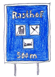 In Deutschland kann man Currywurst in den Raststätten essen. In Frankreich findet man eher Spaghetti und es gibt überall Mc Donald's. In Frankreich kann man auf den Raststätten duschen. In Deutschland habe ich nur jemanden gesehen, der sich die Zähne geputzt hat, das ist alles. (Alexander)