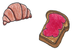 Am Morgen esse ich Brot mit Butter und Marmelade. Ich esse auch Brötchen. Ich trinke Milch und Saft.