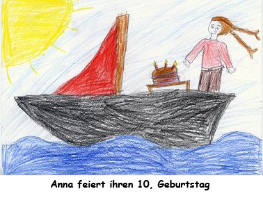 Anna und Max müssen Französisch lernen. Sie gehen in Paris in die Schule. Anna versteht fast gar nichts. Einmal versucht sie zu begreifen, was ihre Mitschüler machen: Sie singen und zeichnen Könige und Königinnen. Nach der Schulstunde versteht sie erst, dass es Geschichtsunterricht war. Einmal feiern sie den französischen Nationaltag am 14. Juli mit ihren Freunden, die sie ins Restaurant einladen. Anna weiß nicht, was sie bestellen soll, weil sie die Karte nicht versteht. Also bestellen ihr Vater und sein Freund Schnecken für die Kinder. Und es schmeckt ihnen sehr gut. Wir können uns nicht vorstellen, Schnecken zu essen, aber Anna hat sogar die Schnecken von ihrem Vater gegessen.