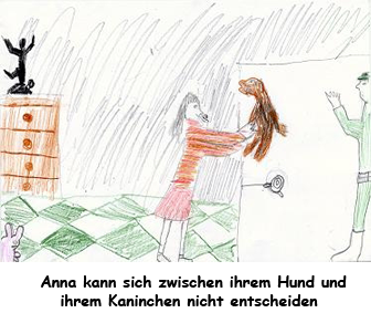 Sie sind Juden, aber sie sind nicht religiös. Der Vater verlässt heimlich Deutschland und seine Familie folgt ihm kurz darauf. Es ist kurz vor Hitlers Machtergreifung, und sie haben Angst, ins Gefängnis zu kommen. Sie gehen deshalb in die Schweiz und lassen ihr Dienstmädchen zurück, das ihnen später folgen soll. Bevor sie gehen, sollen die Kinder darüber nachdenken, was sie mitnehmen möchten. Anna zögert: Sie kann sich zwischen ihrem rosa Kaninchen und ihrem Plüschhund nicht entscheiden. Schließlich nimmt sie ihren Hund mit.