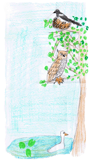 Übersetzung: Die Elster nistet hoch, die Gans nistet tief, der Uhu nistet weder hoch noch tief.