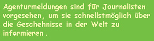 Presseagenturen arbeiten mit Journalisten in sehr vielen Ländern. Sie verschicken an andere Journalisten vor allem ganz kurze Artikel, die man Agenturmeldungen nennt.