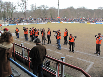 Und auf der Linken saßen eine Reihe Sportreporter und nicht wenige Fotografen!