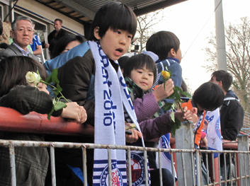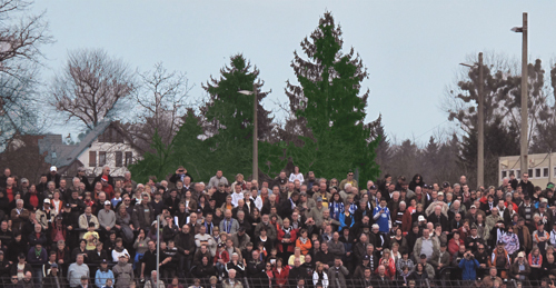 Kurz vor Beginn des Spieles gab es eine Schweigeminute für die Opfer des Erdbebens und der Tsunamiwelle in Japan. Alle standen auf und wurden leise, was bei 7.000 Menschen ziemlich beindruckend ist.