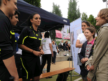 ...Gaëtane Thiney, Stürmerin der französischen Nationalmannschaft und die Fußballerin Nelly Guilbert. Beide sind neben dem Training berufstätig: Gaëtane arbeitet beim Französischen Fußballbund und Nelly als Kinderbetreuerin.