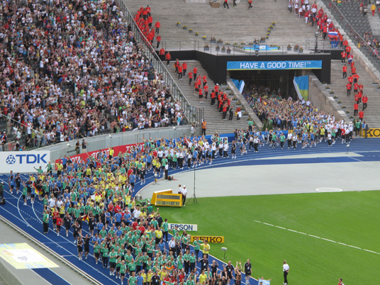Les 3000 volontaires rentrent dans le stade avec les athlètes allemands.