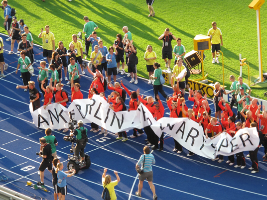 Sie fordern die Zuschauer nochmal auf, kräftig zu jubeln.