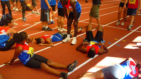 ... und trafen sich zu einem Länderwettkampf – Frankreich-Deutschland: Erschöpfung nach dem Leistungssport!