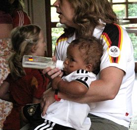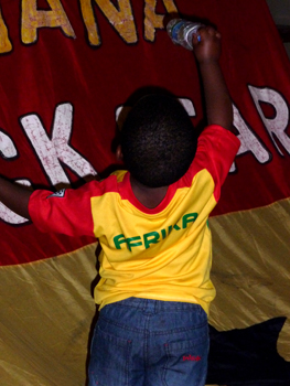 Hier keine Vuvuzela, sondern ein kleiner Handtrommel als Begleitung.