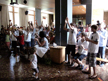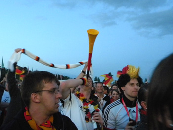 Das Spiel ist aus, das Feiern geht weiter. Die Vuvuzelas gehören hier auch zum Fest.