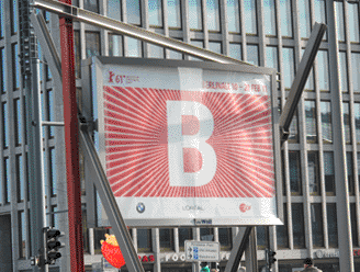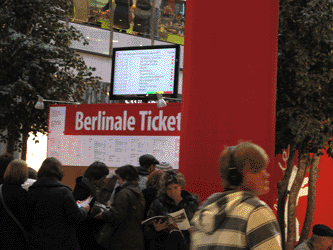 Ici, c'est le coeur de la Berlinale : la Potsdamer Platz. Et qu'est-ce qu'on voit partout ?