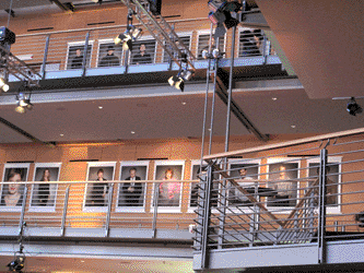 A gauche, c'est le bureau des accréditations. A droite les bureaux où le jury siège.