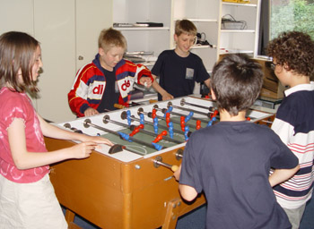 Also bei uns ist das ein bisschen anders. Normalerweise hat man in der Schule jede Woche aufs Neue zur gleichen Zeit die gleichen Fächer, z.B. montags um 9 Uhr Mathe und um 10 Uhr Deutsch. Aber wir haben keine richtigen Fächer, sondern machen abwechselnd verschiedene Aktivitäten. Und das dann manchmal einen halben Tag lang oder auch für eine ganze Woche. Zum Beispiel drei Tage lang Nachrichten schreiben und dann zwei Tage lang einen Kommentar schreiben, einen Tag Presse schreiben und so geht das dann immer weiter. Und wir haben immer andere Lehrer. Aber bei uns gibt es genau wie in der Schule Pausen und manchmal sogar hitzefrei.