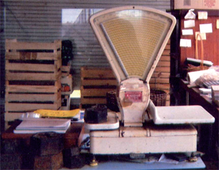 Diese Maschine sortiert Kiwis nach Gewicht                      Die alte Waage mit den alten Gewichten